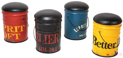 Stool Bucket Red - Taburet metalic, cu aspect vintage. Are spatiu de depozitare, iar sezutul este imbracat din piele ecologica. Pret: 258 lei.
