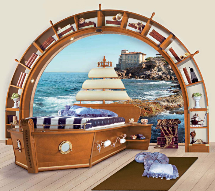 Dormitor colectia Vecchia Marina, in forma de nava si timona, din lemn natural, pret la cerere, Galeriile Noblesse