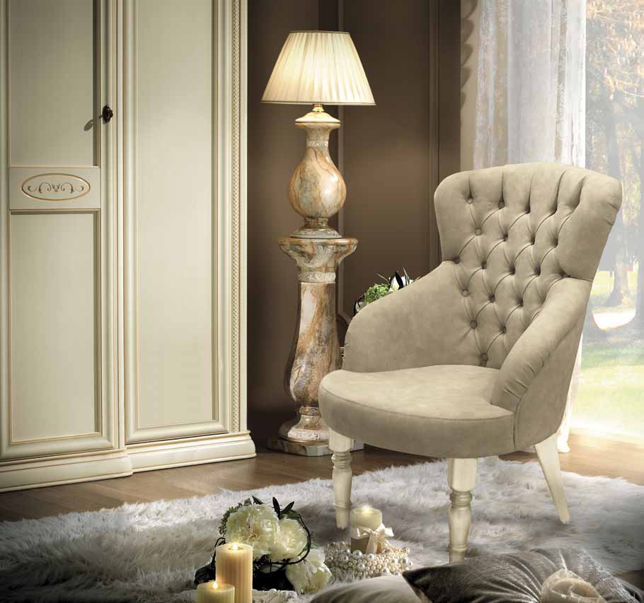 Siena - fotoliu cu design clasic, cu spatar inalt capitonat. Structura si picioare realizate din lemn masiv. Finisaj alb antichizat. Disponibil in variante de tapiserie din piele si material textil. Dimensiuni: 60 x 70 x 92 cm. Pret: 788 euro + TVA