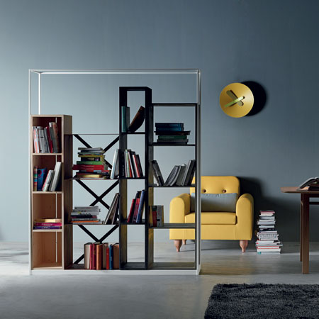 Industry - biblioteca cu design modern, inspirat din arhitectura urbana in continua expansiune. Structura metalica, finisaj alb, rafturi si spatii de depozitare realizate din lemn de brad si metal. Dimensiuni: 153 x 40 x 186 cm. Pret la cerere