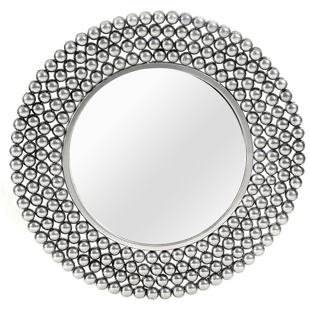 Templar - oglinda decorativa rotunda, cu rama realizata din margele metalice. Dimensiuni: diametru 64 cm. Pret: 190 euro + TVA