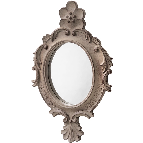 Vanity - oglinda cu design clasic, cu rama realizata din lemn, finisaj gri antichizat. Sculpturi si decoratiuni realizate manual. Dimensiuni: 23.5 x 2.5 x 35.5 cm. Pret: 40 euro + TVA