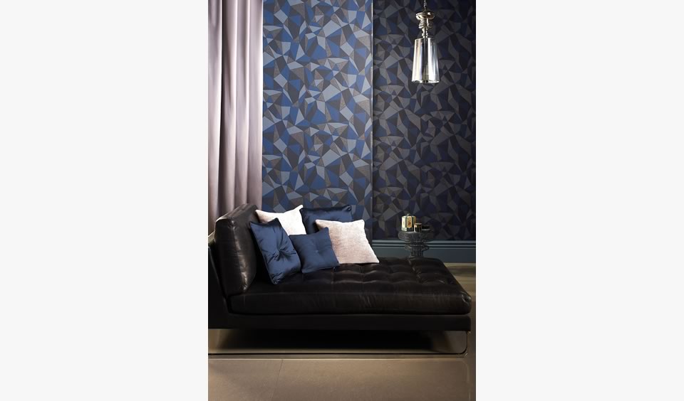 Tapet Prism Midnight. Cu un design elegant, acest tapet sofisticat ofera posibilitatea conturarii unui cadru unic si misterios. Dimensiuni rola: 52 cm x 10 m. Pret / rola: 90 euro + TVA