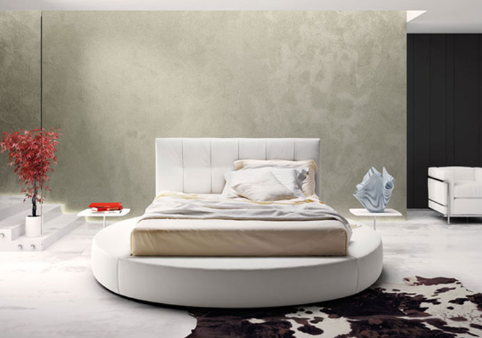 Pat Special cu baza rotunda, disponibil tapisat in textil, ecopiele si piele naturala, somiera de 160x200 cm, preturi incepand de la 1254 euro + T.V.A.