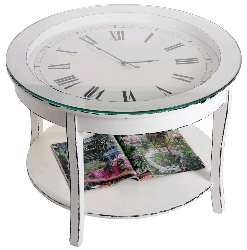 Masa Audrey - Lemn brad masiv lacuit alb. Dimensiuni: L 72.H 50. A 72 cm. Blat sticla securizata. Include ceas cu baterie. Pret: 499 lei.
