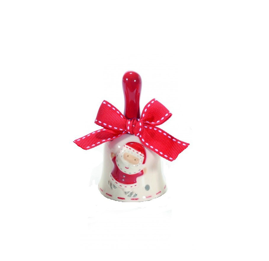 Clopotel decorativ "Mos Craciun", din ceramica. Dimensiuni: 5xH9 cm. Pret: 21 lei.