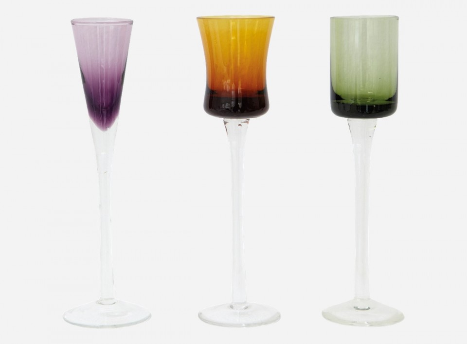 Set 3 pahare lucrate manual din sticla. Dimensiuni: diametru: 5,5/5 cm; inaltime: 18 cm. Producator: House Doctor Denmark. Pret: 95 lei.