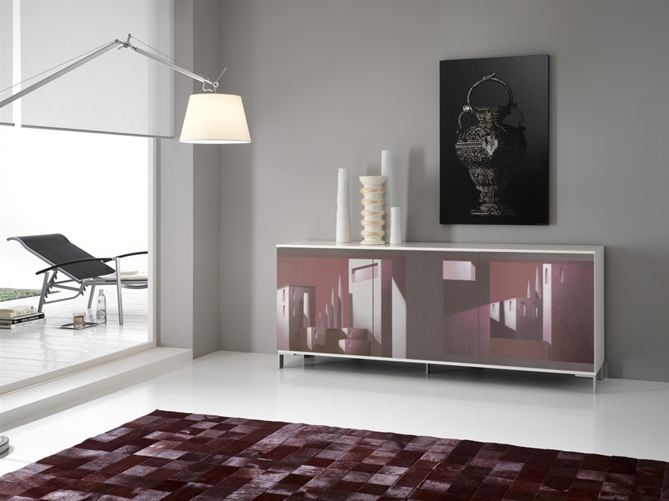 Comoda din colectia Lombardi. Gratie imprimeului sofisticat, cu detalii de inspiratie urbana, aceasta comoda este piesa ideala de mobilier pentru a contura un spatiu ce debordeaza de personalitate. Mobilierul este realizat din MDF, finisaj lacuit lucios. Dimensiuni: 180 x 38 x 73 cm. Pret: 1.287 euro + TVA