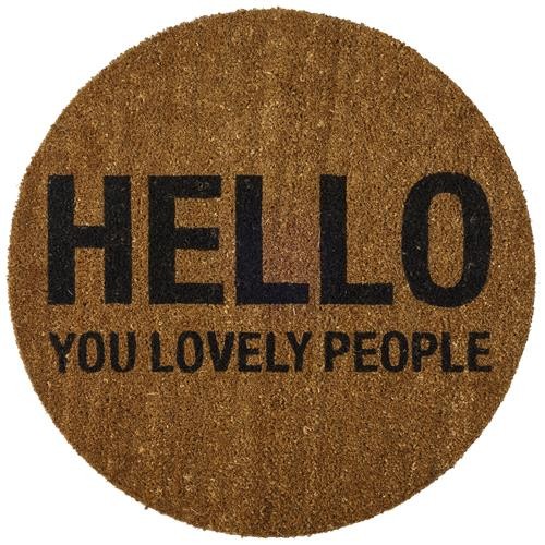 Pres pentru intrare "Hello you lovely people" - Dimensiuni: Ø70 cm. Pret: 265 lei.