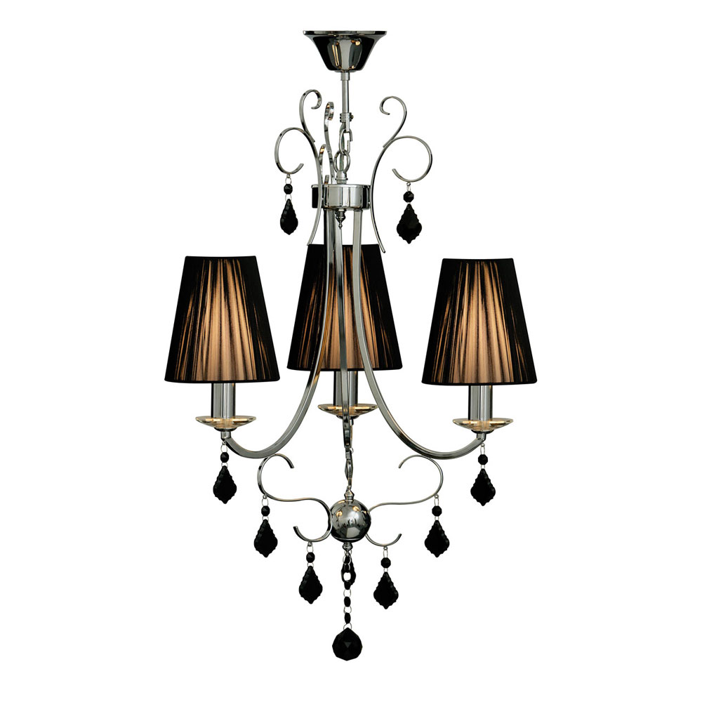 Shade - candelabru cu 3 brate, decoratiuni realizate din cristal. Abajururi realizate din material textil. Dimensiuni: 53 x 53 x 63 cm. Pret: 92 euro + TVA