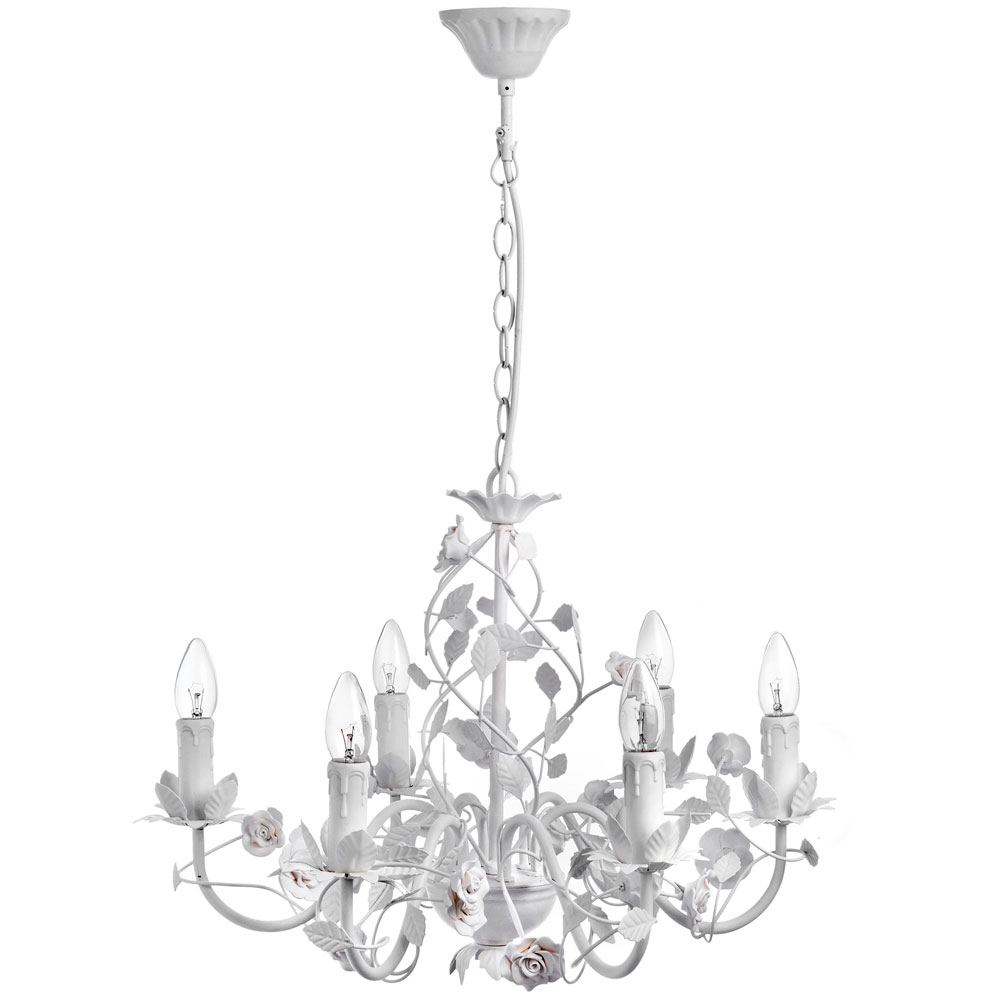 Cream - candelabru cu 6 brate, decorat in tematica florala. Finisaj alb mat, antichizat.