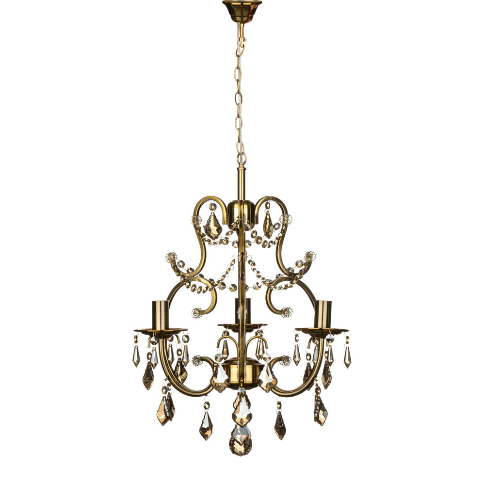 Dexter - candelabru cu 3 brate. Realizat din cupru; decoratiuni realizate din cristal si sticla. Dimensiuni: Ø37 cm. H 49.4cm (excluzand lantul). Pret: 105 euro + TVA