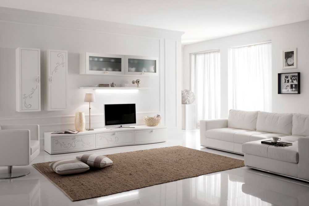 Liberty - mobilier pentru living, in stil clasic reinterpretat. Mobilierul este realizat din MDF, finisaj alb frasinat, cu decoratiuni cu motive florale, finisaj argintiu. Elemente de feronerie decorative, finisaj argintiu antichizat. Dimensiuni compozitie: 308 x 56 x 198 cm. Pret compozitie: de la 2.970 euro + TVA