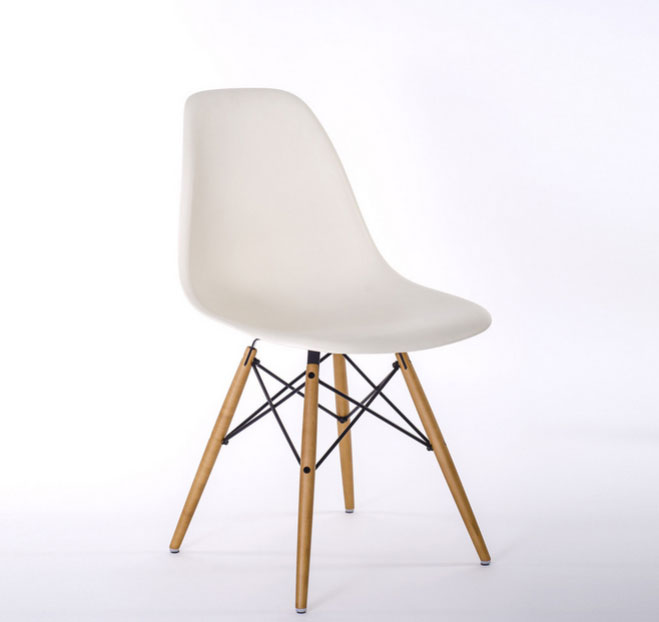 Eames Plastic DSW cu picioare natur - Eames Plastic Side chair, creat in 1950 de celebrul cuplu de designeri Charles si Ray Eames, reprezinta versiunea contemporana a legendarului scaun Fiberglass. Acesta a fost creat pentru concursul "Low-Cost Furniture Design" din cadrul MoMA, din New York, si este primul scaun din plastic manufacturat industrial. Pret: 1.600 lei.