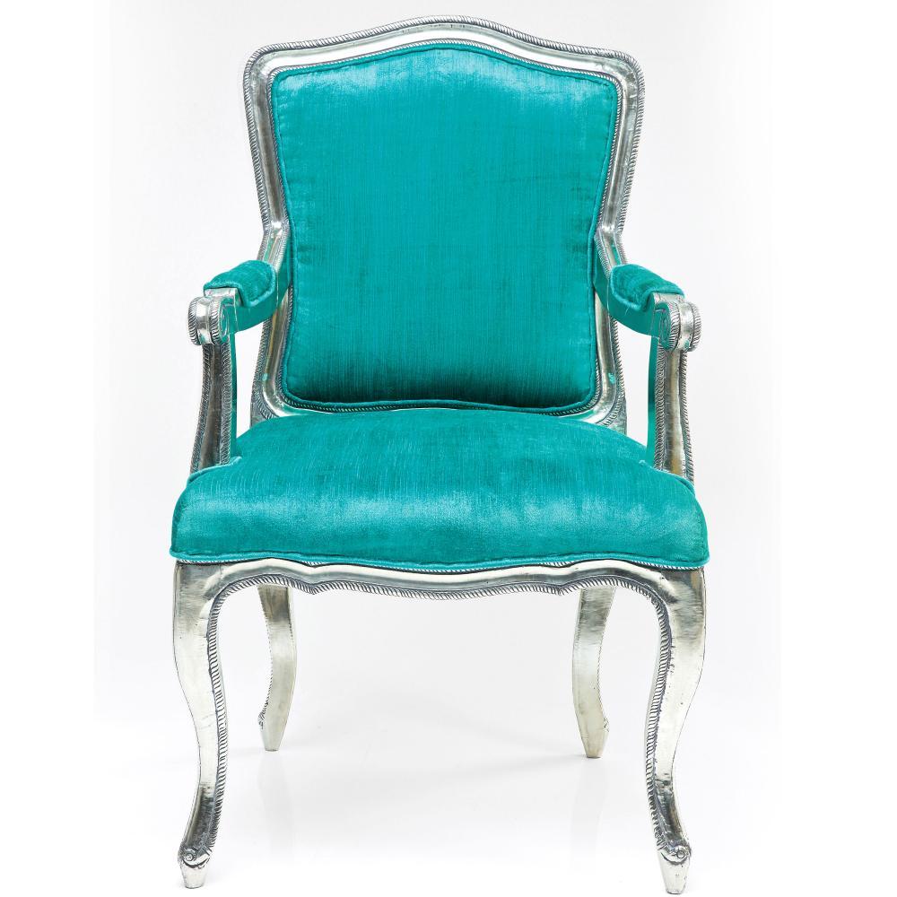 Scaun catifea cu structura lemn de mango - Regency. 4 culori disponibile - by KARE Design. In stil baroc reinventat, cu tapiterie de catifea lucioasa realizata din bumbac si vascoza, scaunul Regency are o structura cu o linie clasica, realizata din lemn de mango si finisaj argintiu. Disponibile in 4 variante de culori, scaunele Regency sunt vibrante si tonice, transformand orice interior intr-un spatiu celebru.