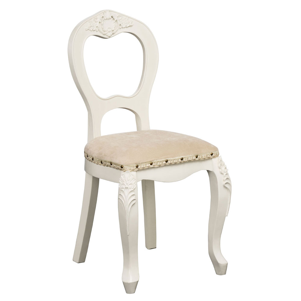 Scaun Chateau, cu design elegant si romantic, ce cucereste prin atentia acordata fiecarui detaliu. Realizat din lemn, finisaj antichizat. Sezut tapisat cu catifea. Dimensiuni: 45 x 40 x 90 cm. Pret: 140 euro + TVA