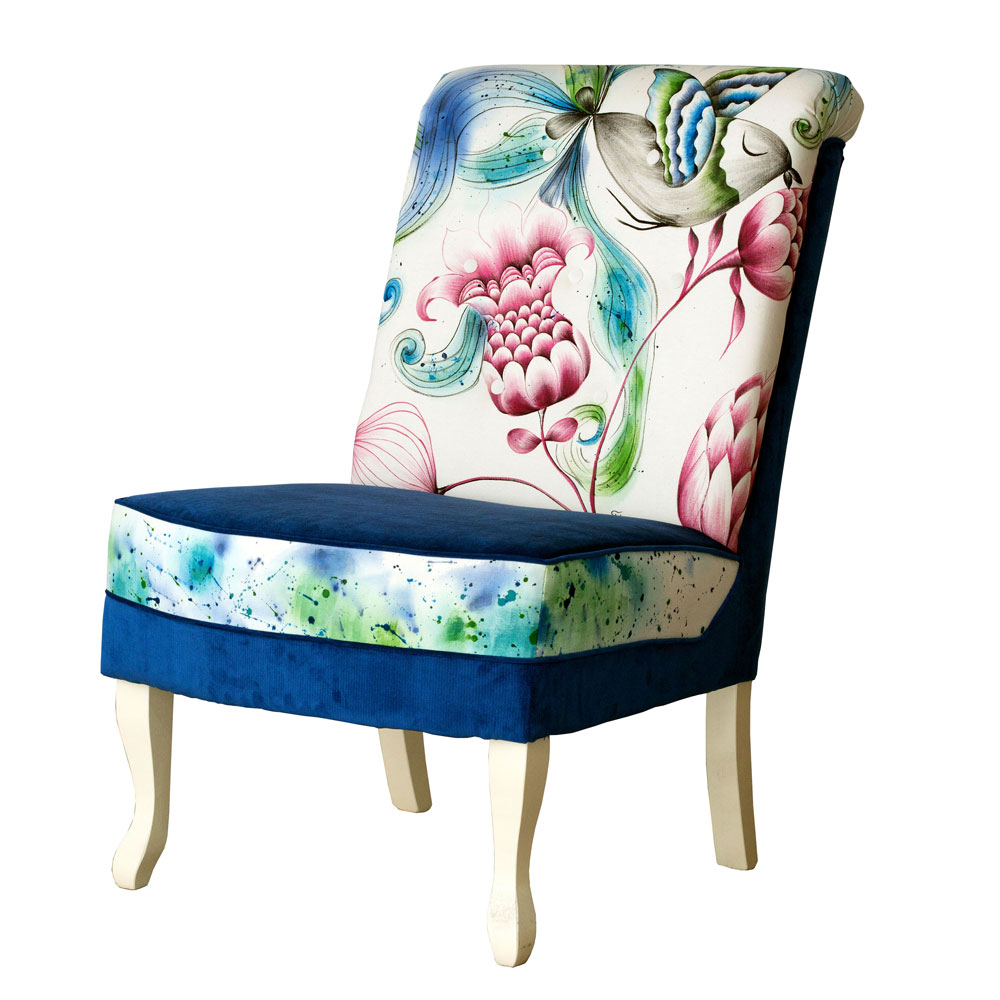Fotoliu fara brate, cu tapiterie pictata - Prinzatorul de vise, pictura manuala. Prinzatorul de vise este povestea spusa de fotoliul fara brate. Pictura manuala este cea care potenteaza aspectul fotoliului, insa jocul de culori realizat de tapiteri da nastere unui corp de mobilier unic. Fotoliul face parte din colectia Umbra Povestilor ce ne poarta in lumea fabuloasa in care totul este posibil. Pret la cerere.