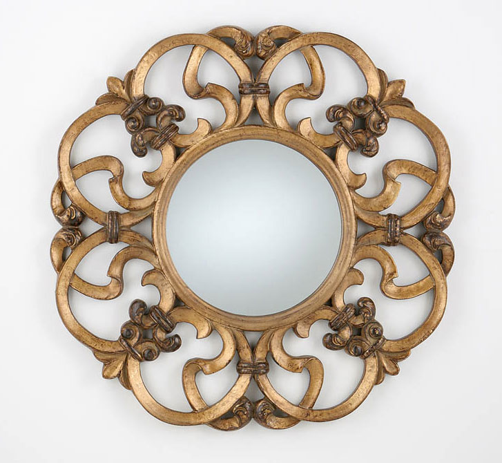 Oglinda aurie - Classic, diametrul 80 cm. Oglinda rotunda in stil clasic cu rama generoasa din lemn sculptat, cu finisaj din foita de aur antichizat. Oglinzile sunt mai mult decat obiecte functionale, ele decoreaza elegant peretii casei tale, conferind unicitate, personalitate si stil oricarui interior. Pret: 870 lei.