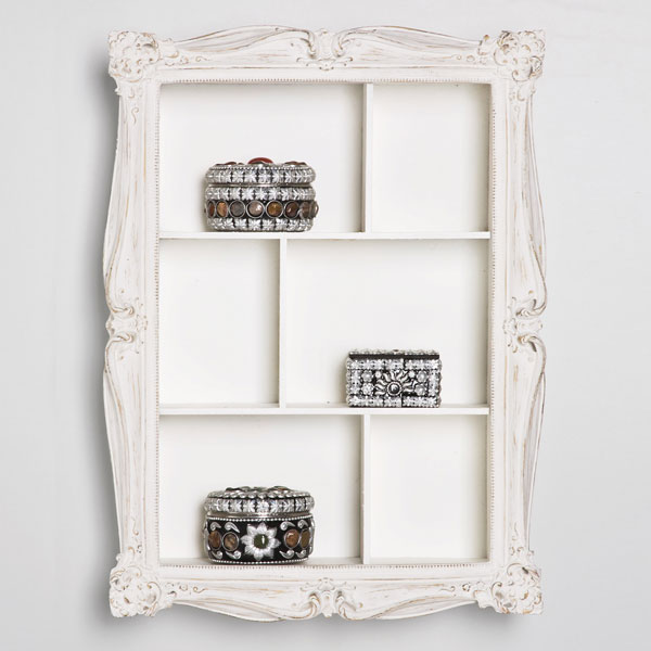 Etajera tip tablou cu rama baroc - Collector, alb sau verde - by KARE Design. Un sistem de rafturi cu rama decorativa antichizata, in stil baroc. Fie ca il folosesti in baie, in dormitor, living sau in hol, raftul este un element functional. Ca sa creezi un impact estetic foloseste mai multe rafturi asezate asimetric pe un perete in contrast. Pret: 357 lei.