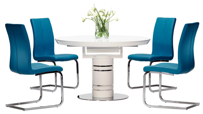 Masa Ted - MDF alb lucios. Diametru: 120-160/H 75 cm. Pret intreg: 3.999 lei. Pret redus: 1.699 lei