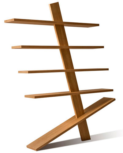 Biblioteca Supergiu', cu design avangardist, semnat de Marco Ferreri. Realizata din lemn masiv de stejar, cu suport vertical si patru rafturi unite pe diagonala. Dimensiuni: 170 x 25 x 185 cm. Pret la cerere.