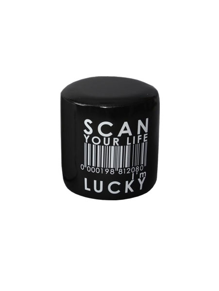 Taburet decorativ negru din piele Scan you life - Un mod nonconformist, dar foarte practic de a-ti decora casa este cu ajutorul acestui taburet decorativ negru din piele. Taburetul are imprimat un cod de bare si textul "Scan your life. I'm lucky". Pret redus: 119 lei.