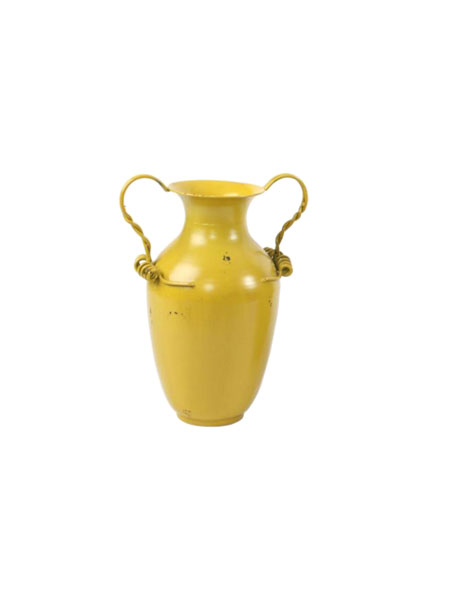 Vaza vintage galbena cu 2 toarte din metal - Pentru un decor vesel si plin de viata, florile in vaza sau in ghivece sunt nelipsite. Vaza vintage galbena va straluci oriunde o vei aseza in casa. Pret redus: 129 lei.