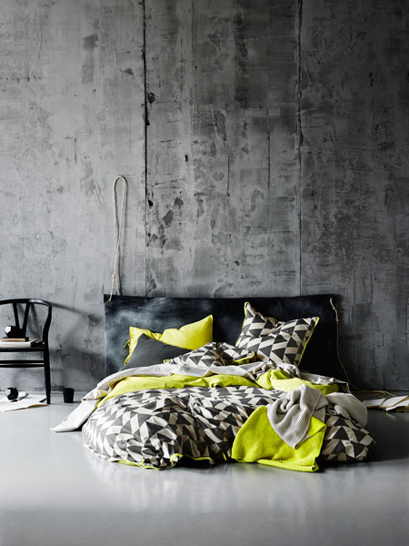 Betonul aparent este, cu siguranta, materialul preferat al designerilor si al arhitectilor. Il intalnim in din ce in ce mai multe spatii, insa, din cauza aspectului sau brut, acesta nu poate fi agreat de orice persoana. Foloseste betonul aparent daca ai un dormitor contemporan si daca iti doresti un colt cu o personalitate puternica. Pentru a echilibra raceala conferita de betonul aparent, opteaza pentru un pat tapisat, decorat cu multe perne.