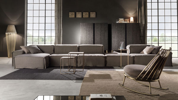 Bassethound - Canapea modulara Bassethound, cu linie eleganta si confortabila. Structura realizata din lemn. Tapiserie detasabila, realizata manual din material textil sau piele, disponibila intr-o gama variata de modele si combinatii cromatice. Pret la cerere