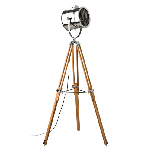 Tribeca - lampadar cu design original, de inspiratie industriala. Baza tripod, realizata din lemn, finisaj lacuit lucios. Abajur din otel inoxidabil, finisaj lucios.Dimensiuni: 70 x 70 x 160 cm. Pret: 328 euro + TVA