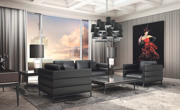 Living colectia Caesar. Canapea si fotolii din piele. Masa din lemn cu blat din marmura. Pret la cerere.