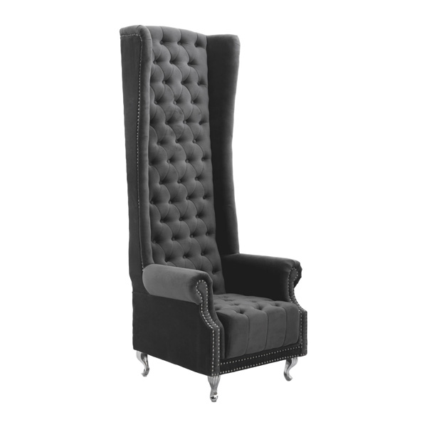 Tall Porter - fotoliu cu design original, disponibil in doua variante de culori - gri si visiniu. Tapiserie din catifea. Structura si picioare realizate din lemn. Dimensiuni: 80x80x190 cm. Pret la cerere