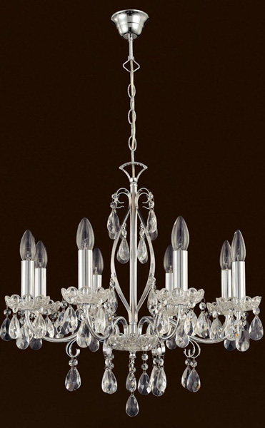 Lustra Casta - crom. Inaltime: 167 cm, diametru: 56 cm. Include lant de cristal. 8x E14/40 W. Pret: 1.099 lei.