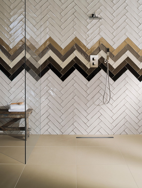 Foloseste-ti imaginatia si joaca-te cu placile ceramice, atunci cand amenajezi baia. Baia ta poate arata fabulos, prin simpla compozitie a placilor ceramice. Compozitia vizeaza nu numai culorile, ci si stereotomia placilor. Astfel, opteaza pentru o placare atipica, precum cea din imagine. Astfel, chiar daca alegi niste placi simple, uni, baia va fi animata prin modul de dispunere al acestora.