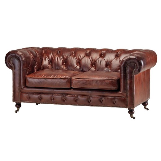 Canapea 2 locuri Chesterfield - Tapiterie piele naturala maro, de cea mai inalta calitate.