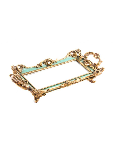 Tava cu oglinda si manere - Tava din rasina de culoare verde, cu manere si detalii florale abstracte aurii in stilul boem si oglinda in partea de jos. Este clasica si eleganta si cu siguranta remarcabila.Dimensiuni: 41x17 cm. Pret: 178 lei.