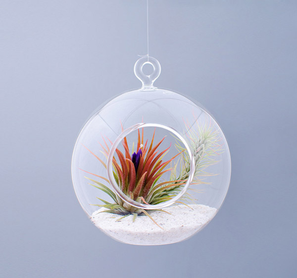 Terariu Sfera - O alternativa fresh la clasicele ghivece cu plante, Aerium e proiectul personal al Ramonei Bejan, pornit cu intentia de a aduce natura mai aproape de oameni intr-un mod mai putin conventional. Terarii (gradini miniaturale aflate sub sticla) si accesorii metalice cunoscute drept ”himmeli” (”cer” sau ”rai”, in suedeza), construite manual, gazduiesc simpatice plante aeriene delicate, de dimensiunea palmei. Un cadou inspirat si un detaliu ce insufleteste decorul unei camere de zi, birou sau cafenele. Pret: 215 lei.