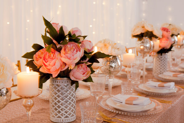 Atunci cand nu stii pentru ce sa optezi, cel mai indicat este sa mergi pe ideea de simplitate. Un aranjament de inspiratie clasica este intotdeauna o alegere potrivita pentru o masa festiva. Foloseste o vesela simpla din ceramica alba sau din sticla si adauga accente metalice, care vor conferi eleganta. Amplaseaza lumanarile in sfesnice simple, metalice si intregeste compozitia cu flori naturale - trandafirii te vor scoate intotdeauna din impas.