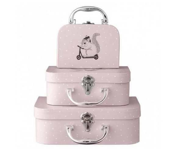 Set 3 valize pentru jucarii roz. Latime: 18 cm, 14,5 cm, 10,5 cm. Lungime: 25 cm, 20 cm, 15 cm. Inaltime: 8,5 cm, 8 cm , 6,5 cm. Pret: 140 lei.