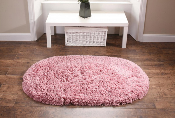 Covor Rainbow oval roz, Tesut manual. 100% Acril. Lungime fir acrilic 5 cm, Placat cu masina. Se poate spala la masina. Pret: 380 lei.