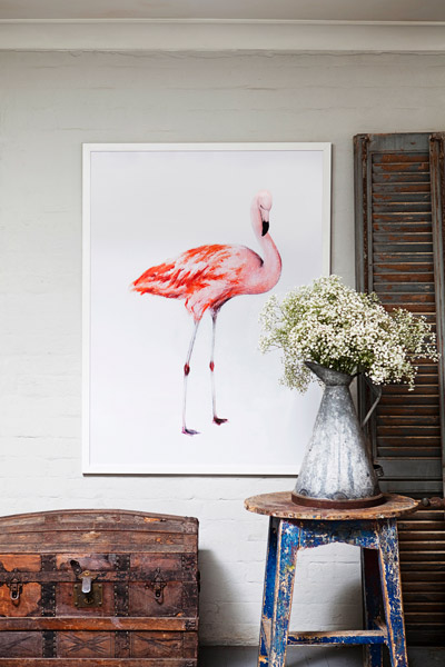Unul dintre cele mai raspandite motive de sorginte tropicala il constituie pasarile flamingo. Imprimeurile cu pasari flamingo inveselesc orice incapere. Poti folosi textile sau tablouri de dimensiuni mari cu pasari flamingo, iar locuinta ta va capata un aer tropical.