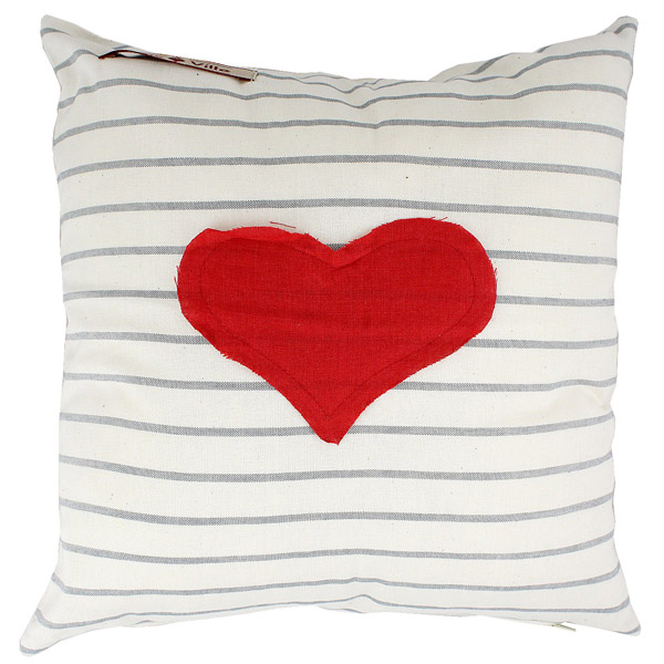 Fata de perna din bumbac alb cu dungi gri si inima rosie 50X50 cm. Pret: 33,90 lei.