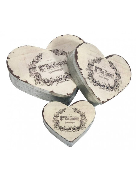 Cutii depozitare bijuterii shabby chic - 3 piese Inima - Cutiile pentru depozitare bijuterii sunt in forma de inima. Le poti folosi ca si cutii de cadouri sau pentru a depozita diferite maruntisuri din casa. Pret: 58 lei.