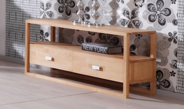 Comoda TV din lemn masiv de fag Minimal RTV clear. Latime: 58 cm, lungime: 125, inaltime: 40 cm. Adancimea sertarelor: 15 cm. Pret la cerere.