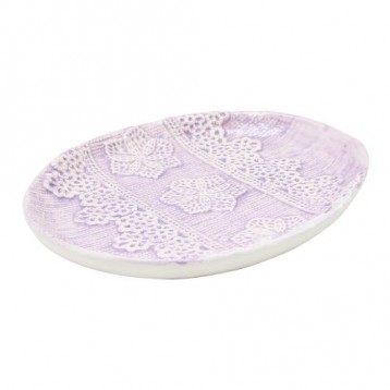 Platou ovoidal din ceramica alba cu decor floral mov 23 cm. Pret: 24,99 lei.