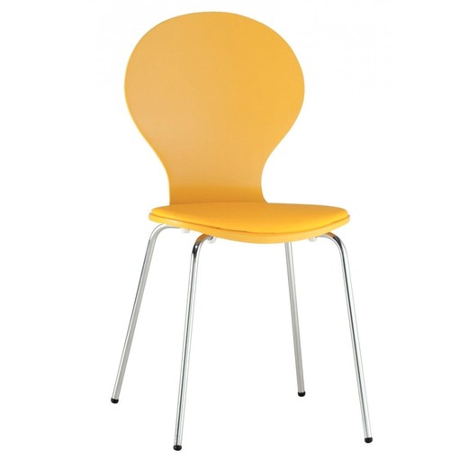 Scaun Flower - Galben. Sezut piele ecologica galbena. Picioare cromate. Dimensiuni: ca. L 44 H 87 A 51 cm. Pret: 159 lei.