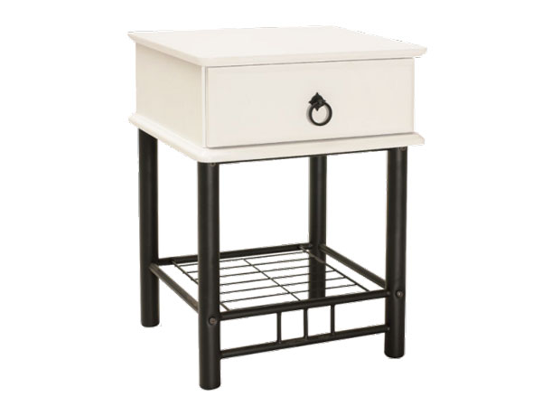 Noptiera din lemn alb si metal negru ET-747 - Construita pe cadru de metal negru si sertar lemn. Dimensiuni: 45x40x61 cm. Pret redus: 358 lei.
