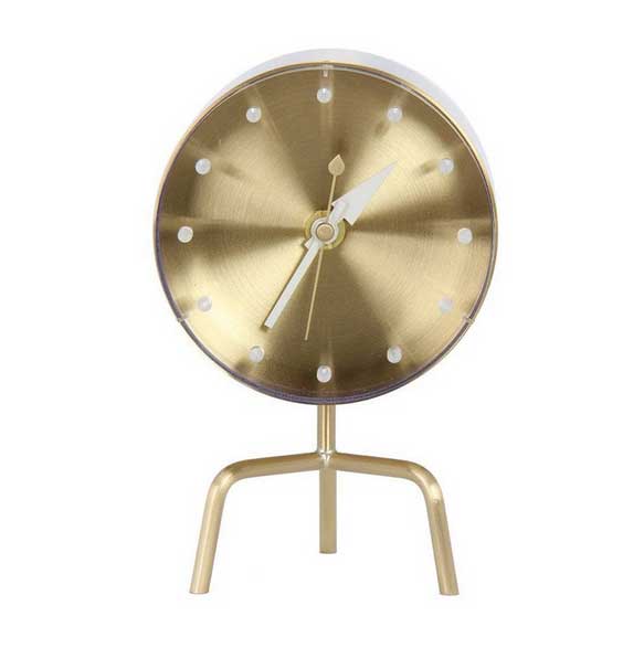 Tripod - Prin diversitatea materialelor folosite si formele sculpturale, ceasurile semnate de George Nelson evidentiaza acea ‘joie de vivre’ a anilor ’50. Imbinarea inovatoare de lemn solid precum ciresul, nucul sau fagul cu diferite metale confera ceasurilor unicitatea unor piese de colectie. Le vei regasi in colectia Muzeului de Design Vitra si le poti cumpara de la Intro. Ceasul Tripod este realizat din sticla si metal cu finisaj de alama. Functioneaza cu sistem quartz, cu o baterie AA. Are un diametru de 10 cm si inaltimea de 17 cm. Pret: la cerere.