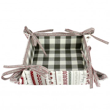 Cos pentru paine din textil alb cu gri. Dimensiuni: 35x35 cm. Pret: 67,90 lei.