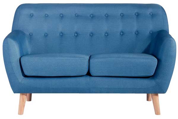 Canapea Jules - Stofa. Culoare albastru. Picioare:Lemn. Scaune pe inaltime 48cm. Adancime sezut 54 cm. Pret: 1.099 lei.